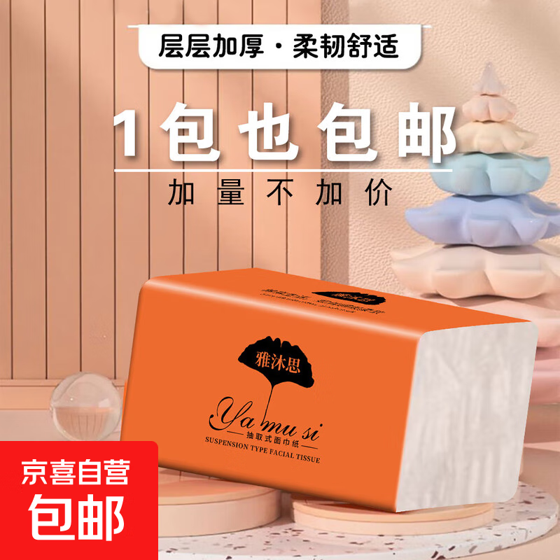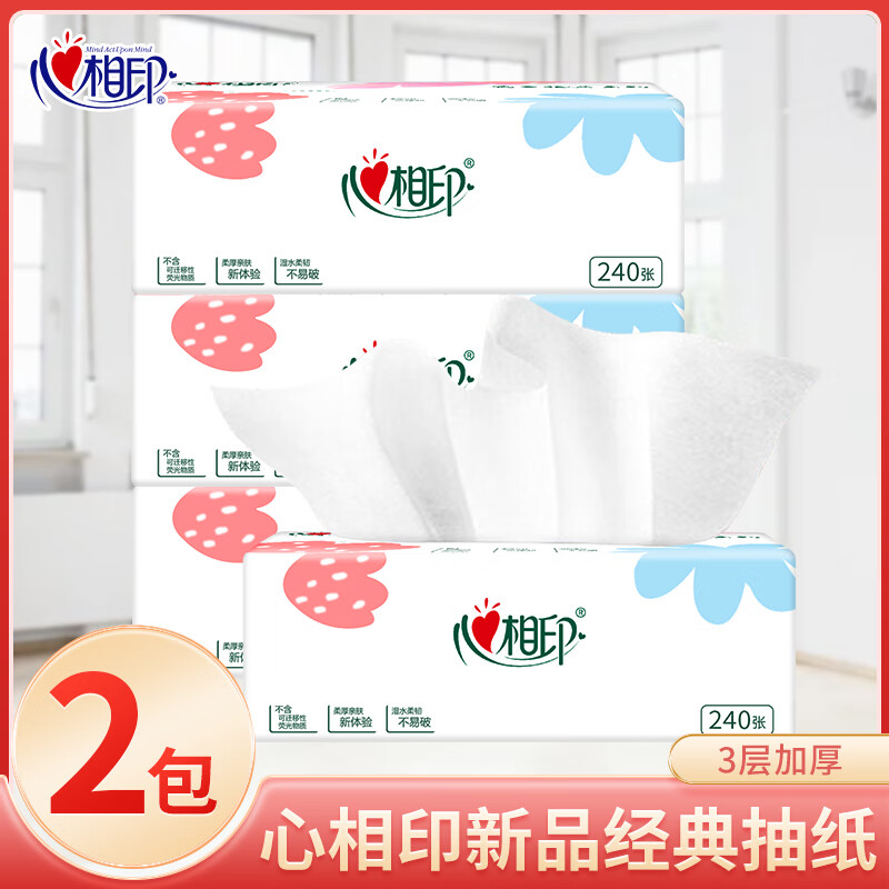 心相印抽纸面巾纸三层母婴抽纸餐巾纸实惠家庭装批发纸抽 3层2包散装