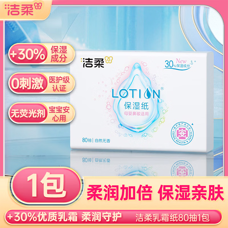洁柔lotion抽纸柔软亲肤鼻炎母婴适用纸巾保湿面巾纸乳霜纸不易红鼻头 【感冒适用】 3层 80抽*1包
