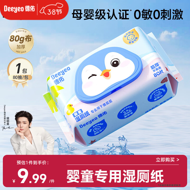 德佑婴童湿厕纸80抽1包体验婴儿红屁屁护臀专用洁厕湿巾纸0敏母婴通用