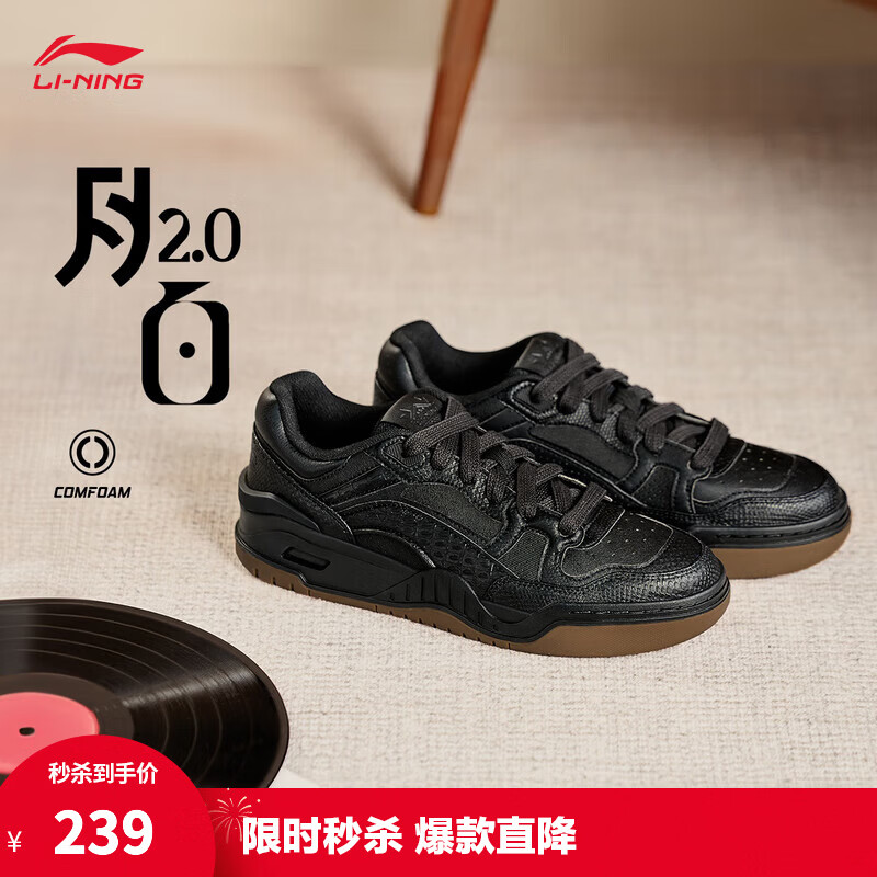 李宁天迹丨板鞋男女鞋低帮透气减震轻便回弹运动鞋休闲鞋小白鞋运动鞋 黑色【男款】-6 39