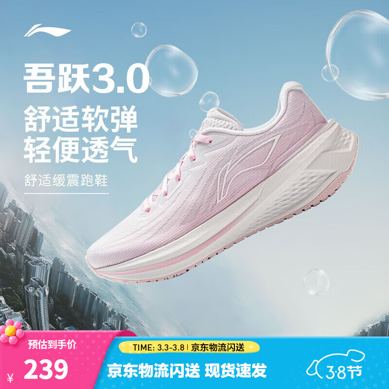 李宁吾跃3.0/4.0|减震跑步鞋女鞋轻便透气网面软底体测跳绳运动鞋 【透气贾卡】嫩樱粉-6 吾跃3.0 38