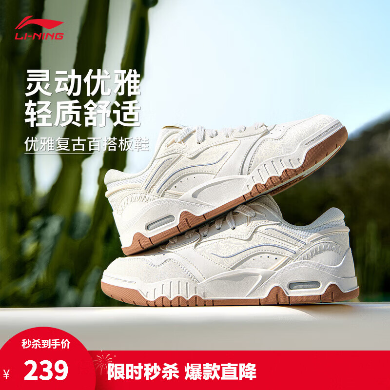 李宁月白3丨板鞋女鞋小白鞋透气减震回弹春夏季经典休闲运动鞋 云雾白-2 奶油白月光 36
