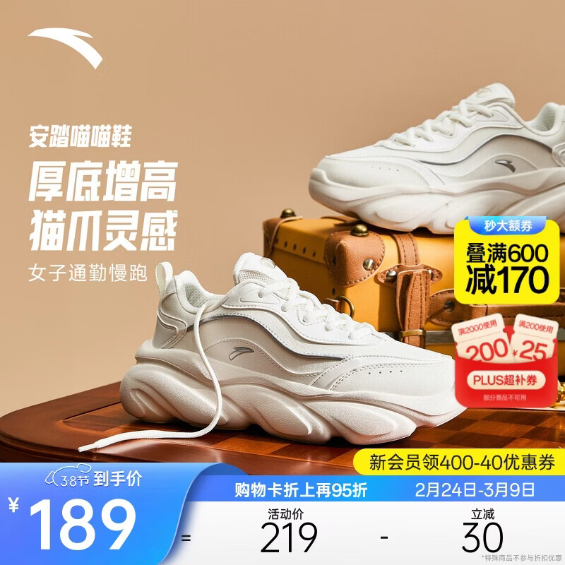 安踏喵喵鞋丨关晓彤同款老爹鞋女鞋革面厚底增高运动鞋女神节礼物
